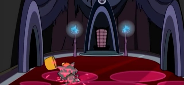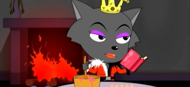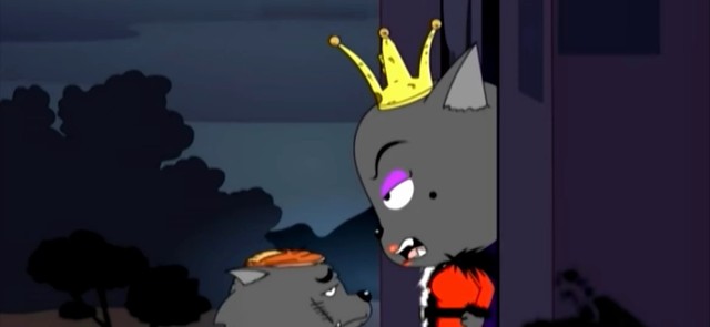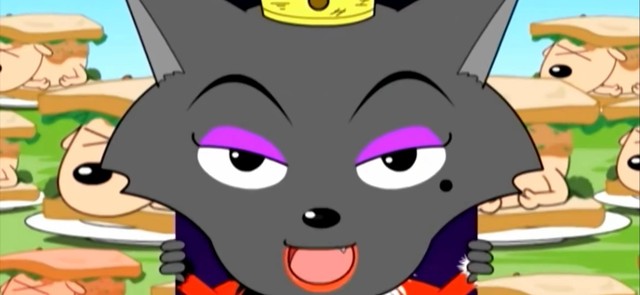 灵活的灰太郎在平底锅下跑进狼堡,看到灰太狼还跑的红太郎眼里冒火,看到桌子上的颜料罐扔了过去,正中目标。