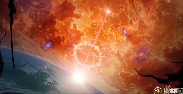 唐三身后的天空变成赤红色,一把修罗剑从云层中显现,一只巨大的手握住修罗剑的剑柄,在握住修罗剑柄的一瞬间,强大的光束击在邪神空间的界壁上。