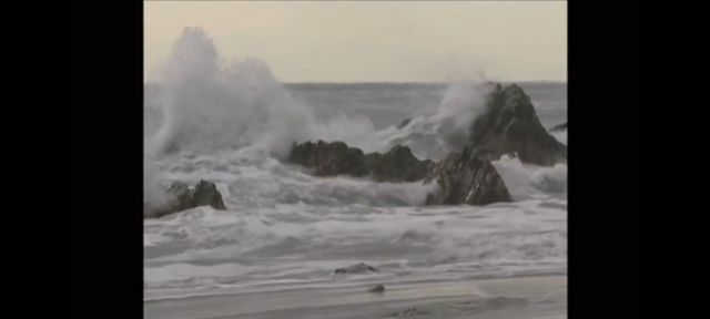 白波在海边,思念着他的爸爸妈妈,而每月就站在他的身旁陪伴着他!