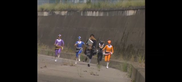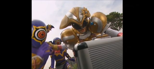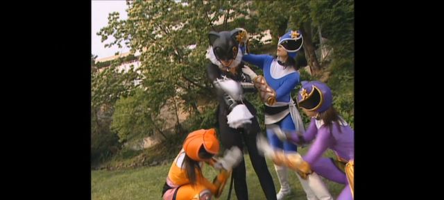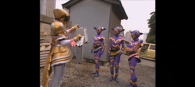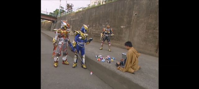 然后他们三个人变身成了魔弹战士