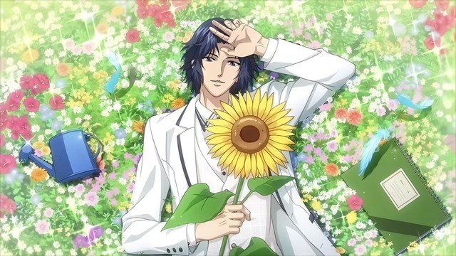 身穿蓝色条纹病号服的幸村精市,神情落寞地坐在床边,阳光从窗户洒入,掠过他鸢尾色的发丝,在他俊美的侧脸上留下暗色的阴影。