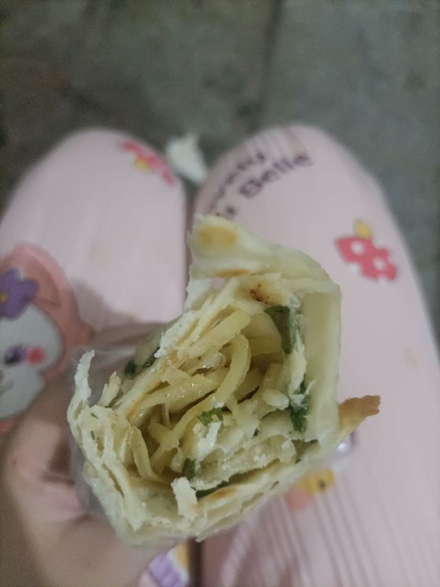今天做了烙葱花饼和孜然土豆丝,卷在一起特别好吃。