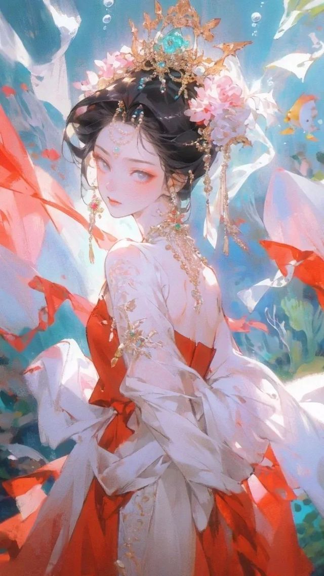 前面的少女身穿红色罗裙,回眸展颜一笑,绝美的容颜绽放的笑容仿佛能暖人一个冬天。