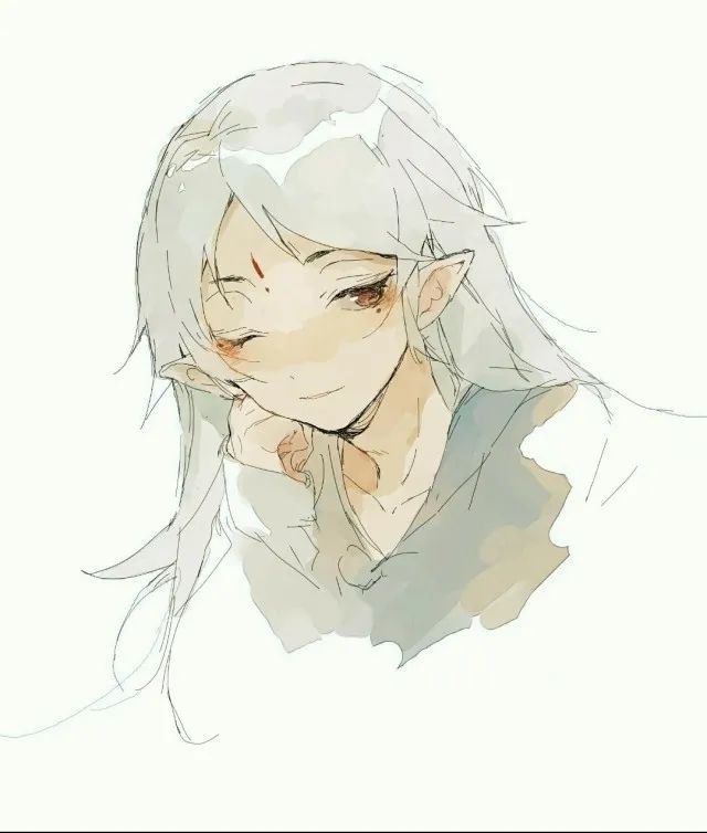 他那双浅蓝色的眼睛纯粹而又茫然,眼角下的泪痣令其整个人都添上一抹世俗的色彩,眉心的一束红痕却又使他带着一股谪仙的气息。