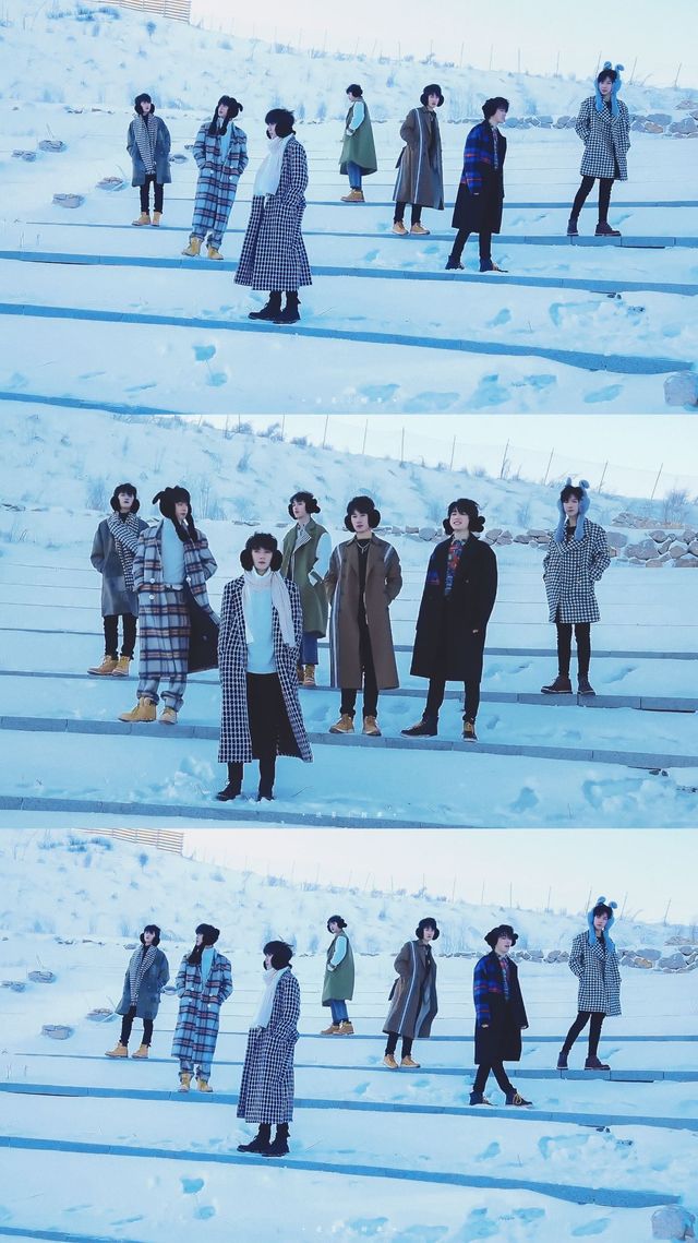 成员们为了拍摄纯白地,来到了比较寒冷的地方。
