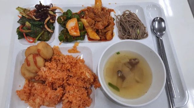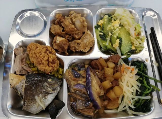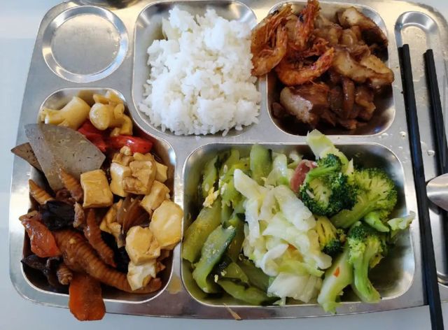 正对面两人看到这幅画面不禁噗嗤一声,瞬间食欲大增,埋头吃饭。