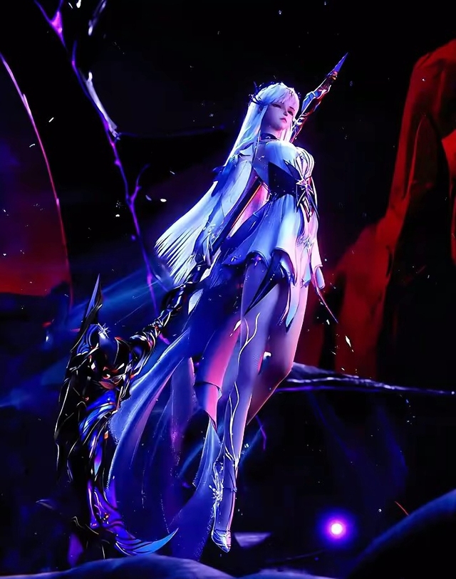 一头紫色的长发变成银发飘舞,原本的紫色短裙变成了,银紫色不规则短裙。