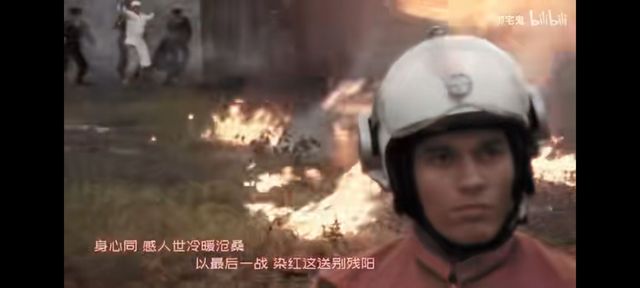 (乡面容严峻的站着,后面是火焰,几个人类也在最后面拉扯着什么;怪兽和枪支闪过,又变成几个防卫队的人站在一起,眼中闪烁着泪花。)