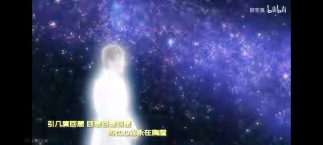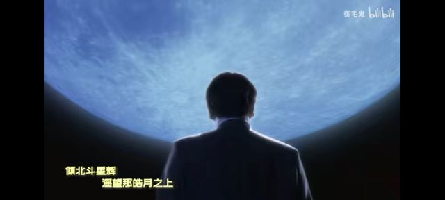 (北斗星司在某处眺望着月球,只留下了一个背影;在地球上的北斗看着远方;一个女子渐渐变成了一个了身上散发着白光的身影;)