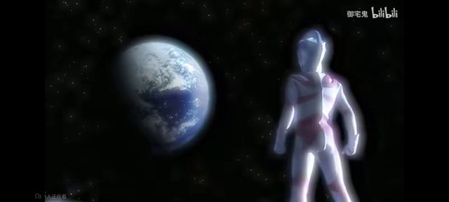 (夕阳下艾斯缓缓转头;在宇宙中艾斯在远处看着地球。)