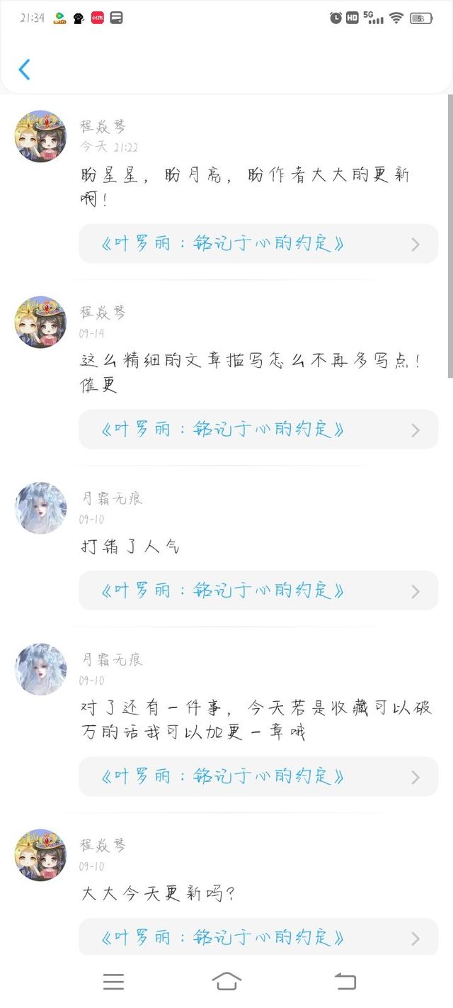 月霜无痕收到一个可爱的小读者一直在催更,这也是我这本书第一个读者催更所以原本我是想这一章明天在更的但是实在是架不住这位读者的催更,于是我今天就连忙的码字了