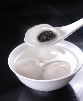 这宵夜很别致,白白的圆圆的,一口下去是甜甜的黑芝麻馅,听韩菱纱说,这便是汤圆。