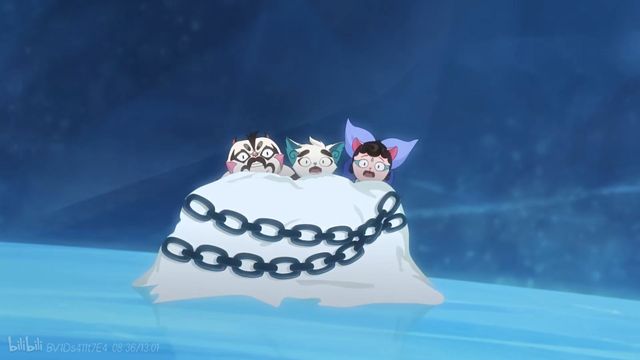 就在星罗班打闹之时,白糖身后巨大的冰块和锁链却全都掉了下来,一个小孩子模样的猫从里面出现……