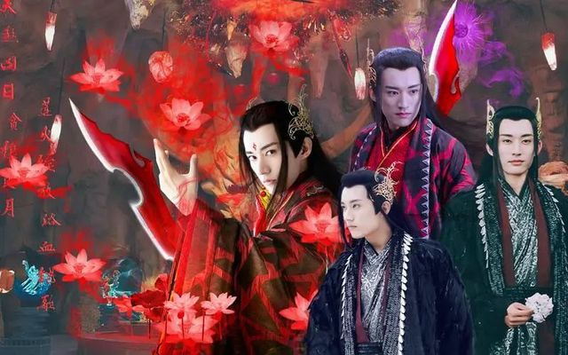 他身着一身黑色羽衣时,金色的发冠,干净简约、颇有大将风范;身着红色华服时,风华绝代、桀骜不羁[3]。