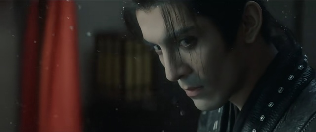 寒鸦肆抱臂而立,他面容冷峻,五官立体,如刀削斧凿,所以睨视着他人时总透着一种迷人而慑人的邪气,