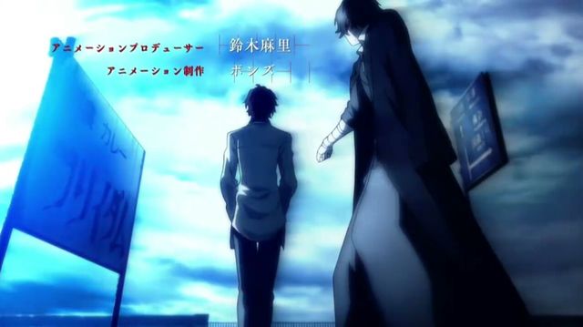 织田作走到一个桥上,一位撑着伞的少年跑向这边,正好撞到了织田作,倒在地上。