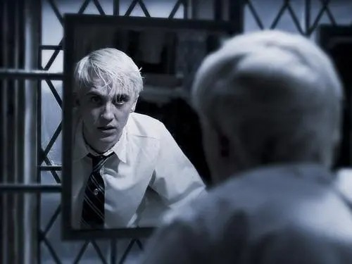 如遭雷劈,德拉科马上抬起头来,透过镜子的反射,发现了你,而你也透过镜子看清了他此刻的样子
