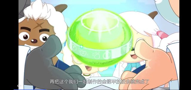 喜羊羊(未来)再把这个我们一起制作的金铠甲放进去就完成了