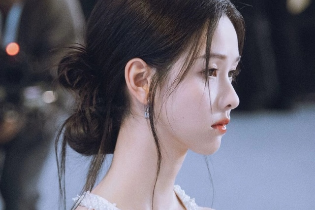 女子温婉可人,藏在母亲身后怯生生的望着刘耀文挺拔的身躯,一头栗色长发被挽在脑后,清冷破碎。
