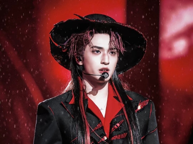 黑红的拉风阔帽下的发丝在火光照耀下呈现耀眼的红,鬼魅般的眼尾透着慵意,泛起不正常的猩红,他微启薄唇。