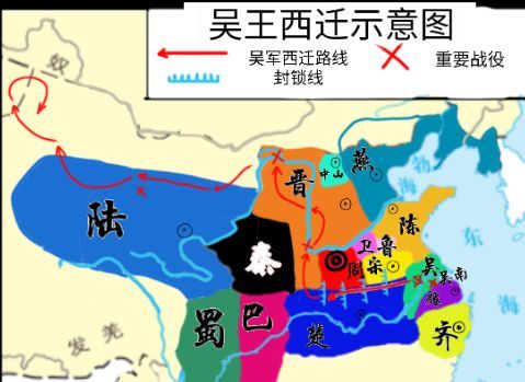 吴国首先突破了楚国的四道封锁线,紧接着到达长江边上,在晋军的阻拦下强渡黄河,死伤过半。