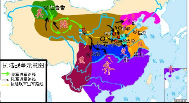 公元前724年5月,抗陆联军先后光复了南阳,潼关,长安,咸阳,兰州等地,进逼青海。