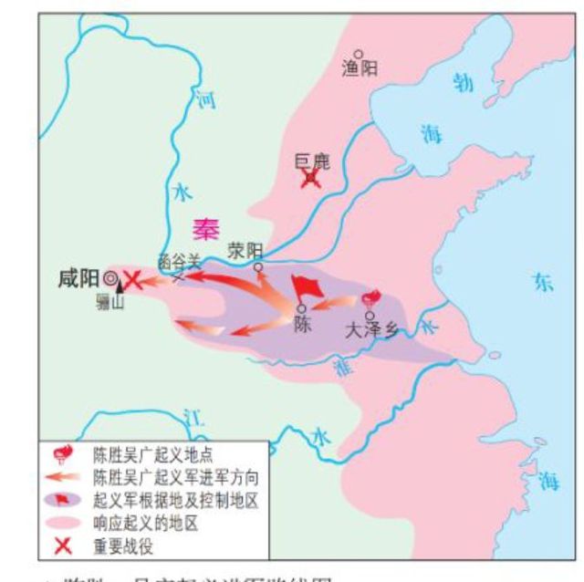 在攻占陈县时,陈胜称王,建立“张楚”政权。各地农民纷纷响应,起义军不断壮大。陈胜派主力向西进攻,直逼咸阳。