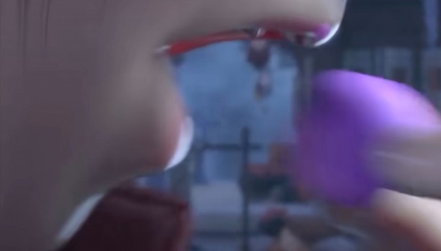 (然后就掏出一粒紫色药丸,然后放在嘴中)