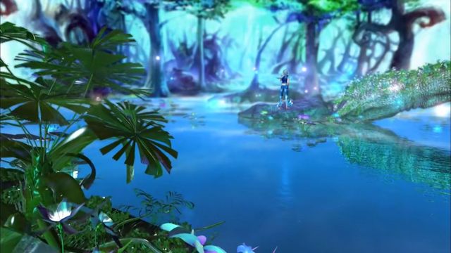 贝贝仙境的森林很美啊,前面有个湖,那里是有个人吗