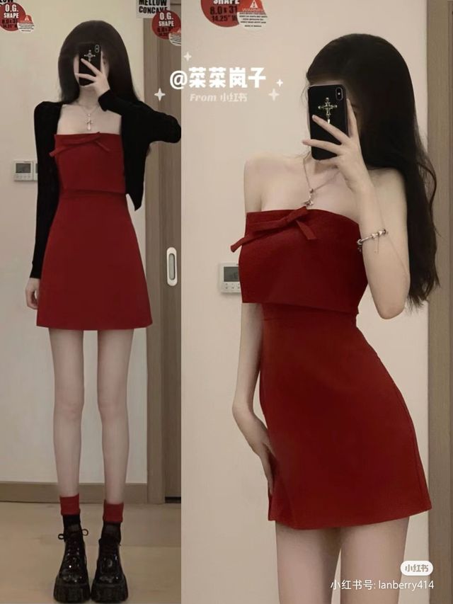 徐必言一身红色抹胸裙