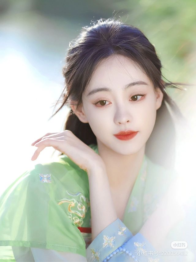 少女一身绿色的裙子,逆着光对着他坐着,莹白的肌肤好像在发光,一张美丽的脸在无形中吸引人的视线