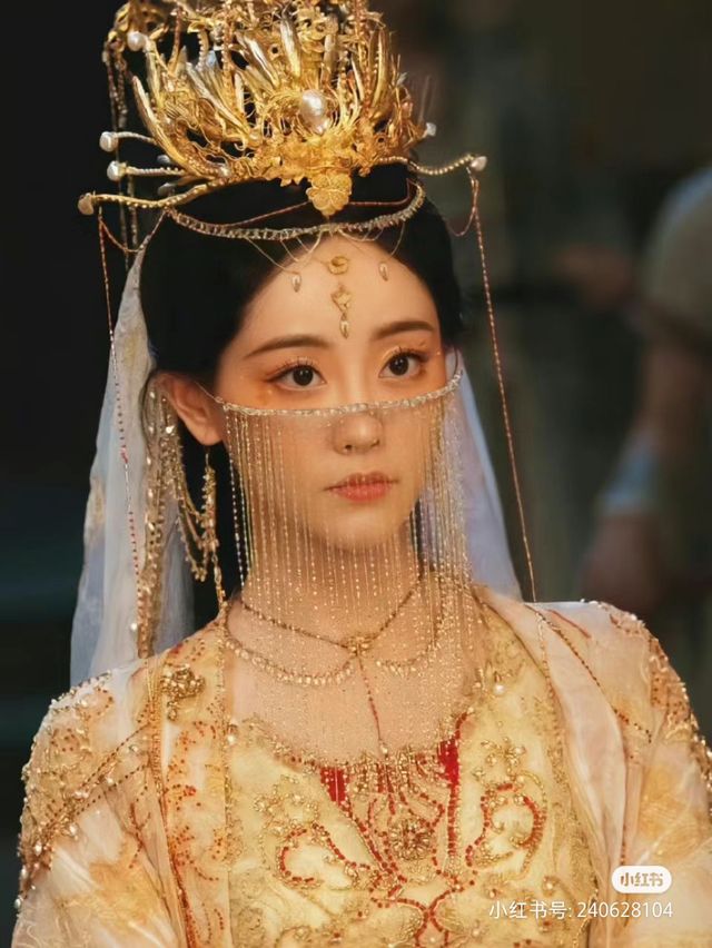 精致的眉眼流转中就透着灵动,一头华贵的饰品衬得伊栖梧像天上的仙子一样美丽,惊艳