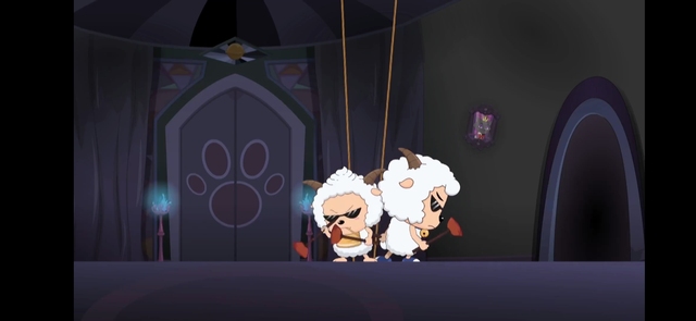 两只羊带着墨镜,手里拿着筛子,以一种视若无人的态度,直接进了灰太狼设的陷阱中