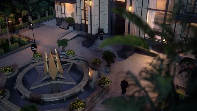 小爱她们走进**大酒店里讲话。