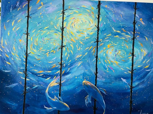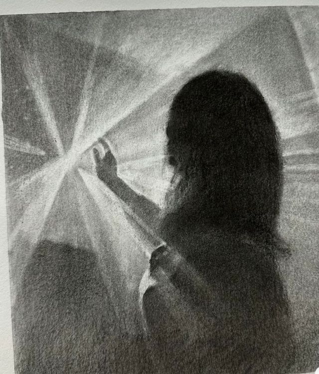 寻着光照的方向,终会朝向光,安然看了之后似有所感拿起笔,也跟着绘画着心境。