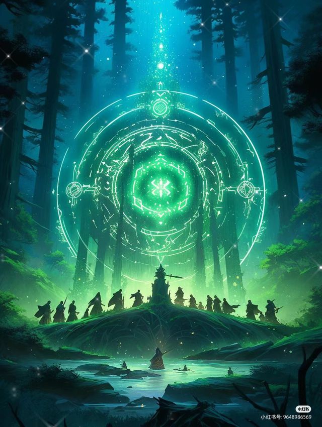 由翠绿的树木和流动的生命之泉构成。阵法呈现出一个融入自然的圆形平台,平台上生长着各种奇特的树木和花草。中央是一颗巨大的生命之心,心脏散发出温暖的绿光。整个法阵散发出生机勃勃的气息,树木在阵法周围摇曳,花朵绽放出绚烂的色彩。站在生命之林中,仿佛能感受到大自然中蕴含的生命力量与和谐。