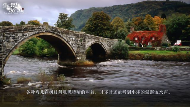 各种鸟儿在树枝间叽叽喳喳的叫着,时不时还能听到小溪的潺潺流水声。