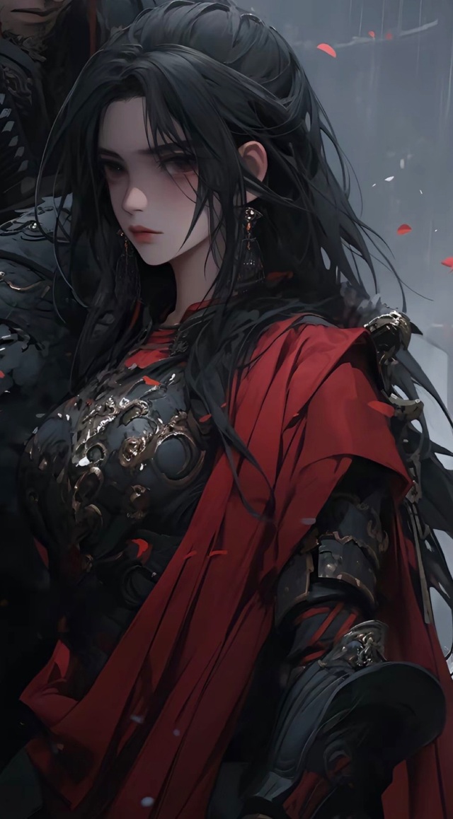 身上披着将军的红袍,一身黑色战甲,眼神冷漠无光。