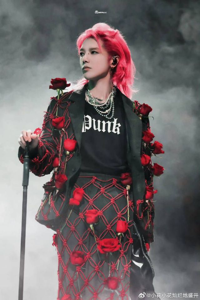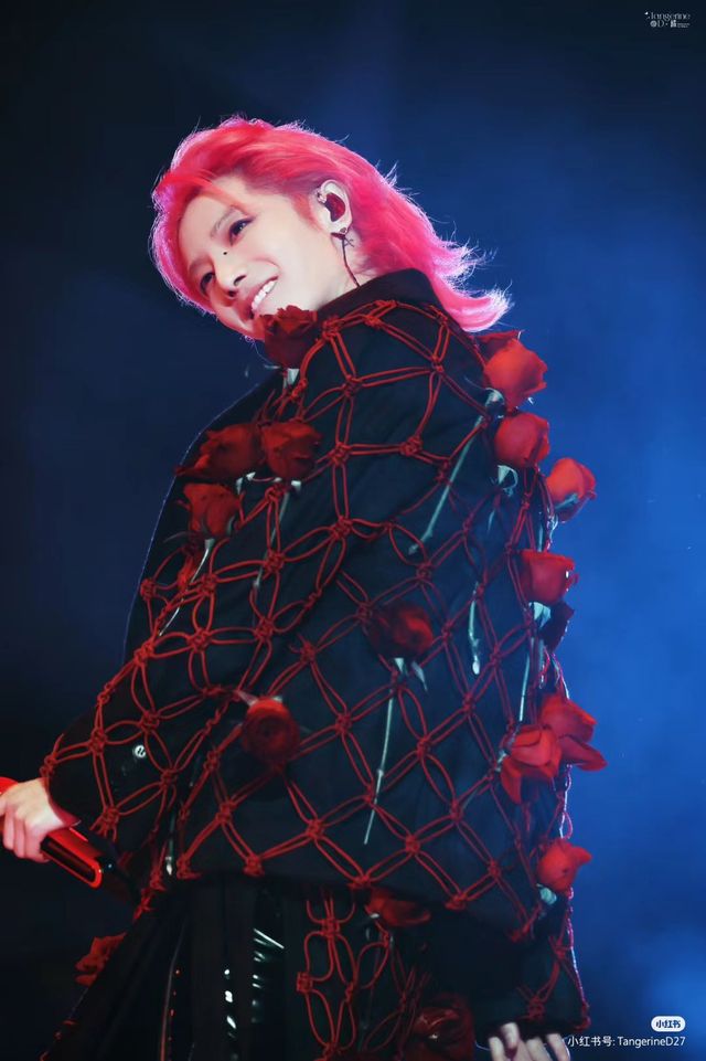 那人全身布满了大大小小的玫瑰,仿佛在他身上盛开,黑与红的强烈对比,梦幻般的浪漫,他肤色白皙,五官清秀中带着一抹俊俏,帅气中又带着一抹温柔!他身上散发出来的气质好复杂,像是各种气质的混合,但在那些温柔与帅气中,又有着他自己独特的空灵与俊秀!