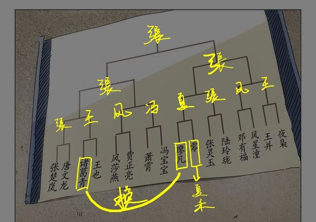 作者原漫是说抽到纸条一对一,我有点没理解明白,我总觉得这人A抽到那人B,那B抽到C呢?怎么打,所以我改个方式,我把原漫的话打出来你们可以看下