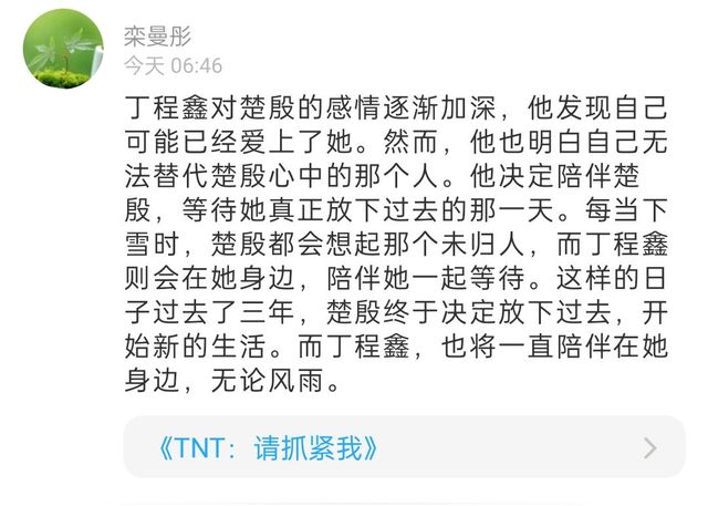 在过去的三年里,于楚殷仿佛经历了一场混沌不清的梦境,当梦醒来时,生活重新回归了正轨。如今回首往事,确实,他(宋亚轩)已经为我做的够多的了,我又何必再去强求其他?有缘之人自会重逢,若缘尽,便不应再勉强。