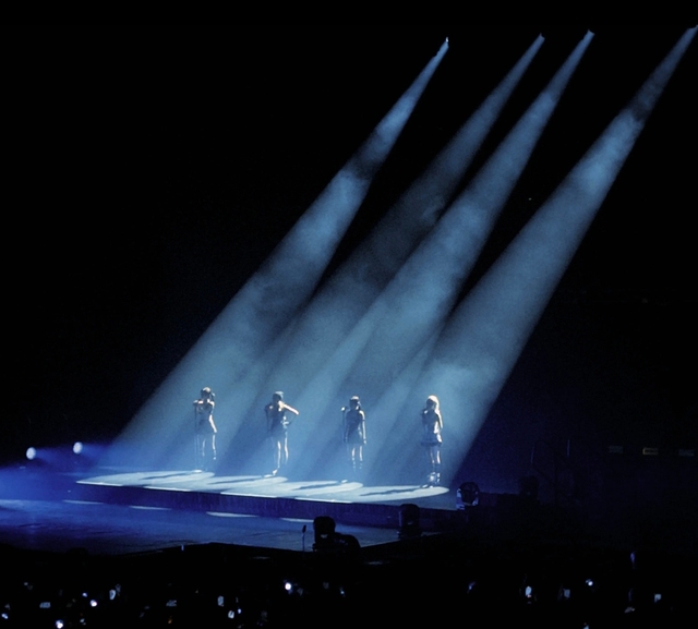 你们缓缓地从升降台上来灯光打在你们身上
