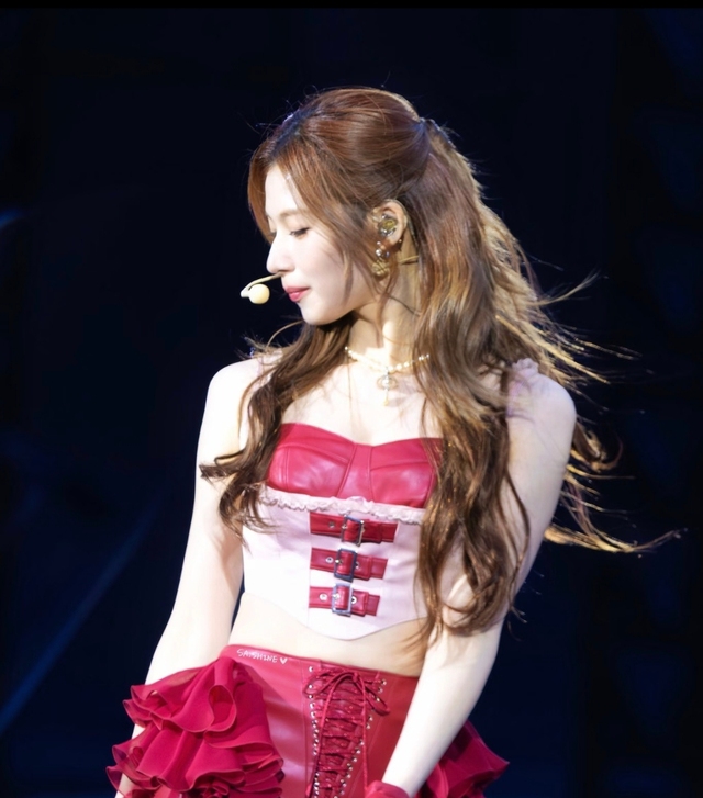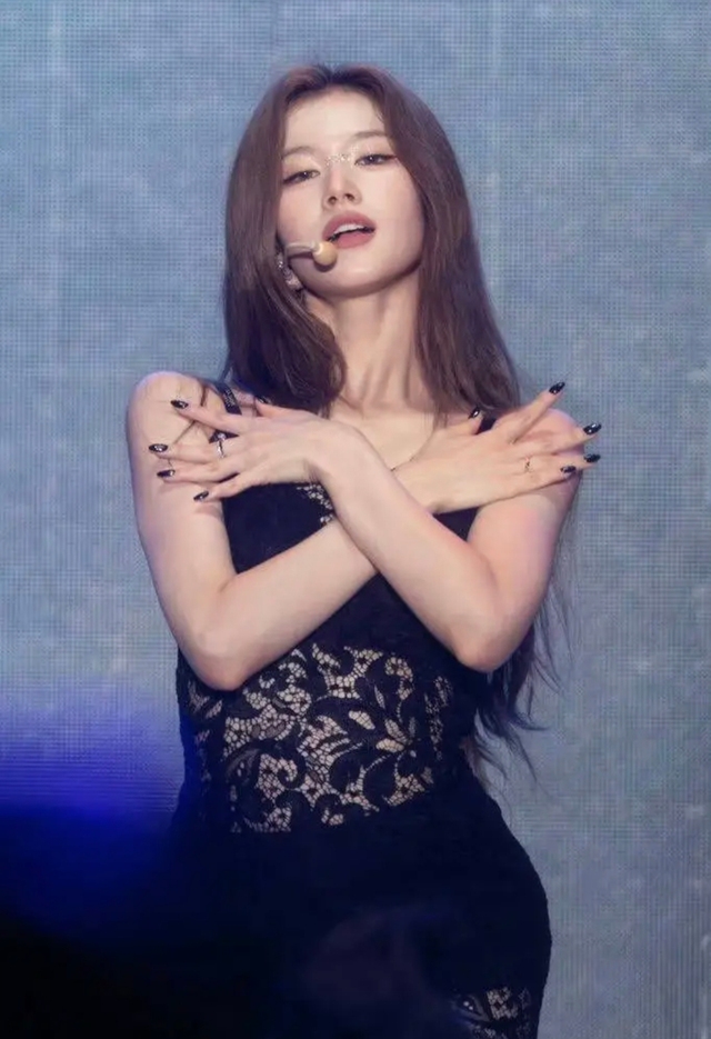 在聚光灯熄灭的刹那,舞台陷入一片深邃的黑暗。下一秒,一束冷白色的光柱猛然打下,照亮了站在中央的妍汝欧尼,她的身影修长而坚定,紧身皮衣勾勒出利落曲线,金属链条与铆钉点缀其间,仿佛暗夜中潜伏的猎手。“砰——”鼓点骤起,伴随着低沉的电子节奏,她的声音如刀刃般划破寂静。每一个音节都充满力量,却又流淌着一种危险的诱惑。她的嘴角微微扬起,眼神锐利如鹰,她的动作干脆利落,步伐如同野兽巡视领地般从容且充满张力。手腕翻转,指尖划过空气,像是一场无声的挑衅;身体随着节拍摆动时,那股自信和霸气让台下的观众屏息凝神。漆黑的长发随着律动飞扬,每一下甩头都带着不可一世的傲慢,却又美得让人移不开目光。当最后一个音符落下,全场陷入短暂的空白,随后爆发出雷鸣般的欢呼声。她站在那里,气场全开,像一个掌控一切的女王,将所有人的目光牢牢锁住