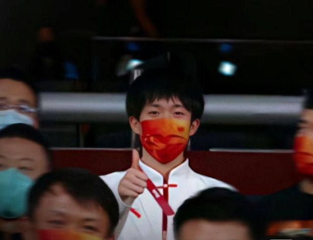 王楚钦也在全程观赛,第一时间拿出国旗给苏予木披上。苏予木也高举国旗!展示中国胜利✌