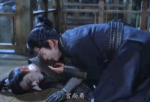 宫远徵抱着宫尚角,泪水顺着眼角流下,与他唇边的血迹混合在一起。