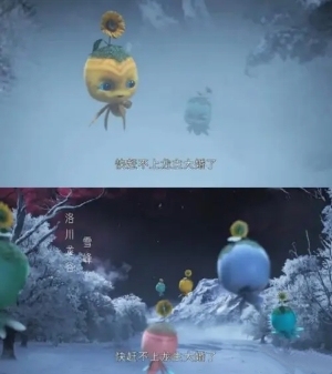 一群头戴向日葵的小精灵一个个在大雪纷飞中带着喜悦飞往雪峰峰顶,为的,就是参加它们灵主和龙主的大婚。