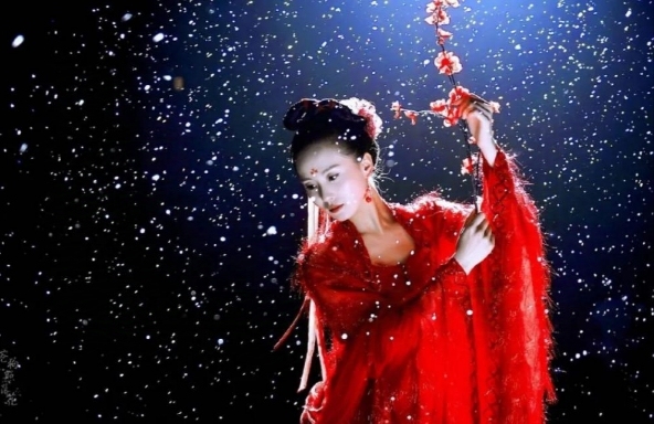 白雪纷飞,龙葵一身红衣,手持红梅,于雪中舞动,如同雪中仙子,一颦一笑,引人痴迷。
