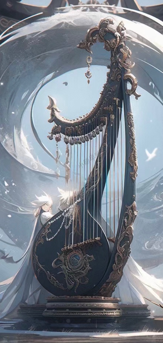 万辅之琴是一把优雅而神秘的琴,其外观令人陶醉于圣洁的韵律之中,琴身由翠绿的葡萄石雕刻而成,表面饰有古老的文案和神秘的纹饰,琴弦由特殊的材质制成,充满弹性,发出清澈的音符,琴柄上雕刻着神鹿的图案,仿佛在诉说一个神秘的故事。