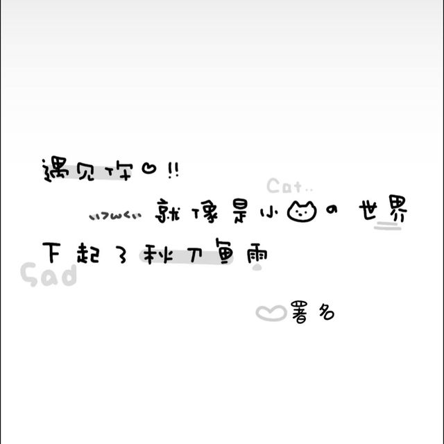 文案是 遇见你就想小猫的世界下起了秋刀鱼雨.