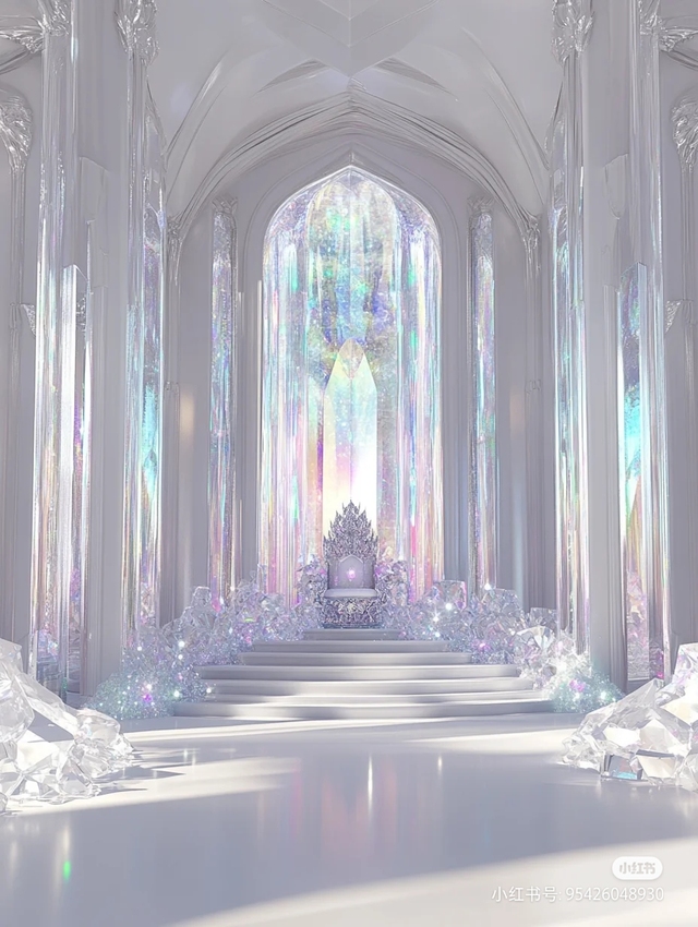 王座室的顶部是一个高耸的拱形结构,拱顶上可能装饰有复杂的水晶雕刻,这些雕刻在光线的照射下显得格外耀眼。